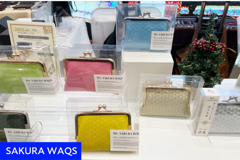 麻の葉や矢羽根など伝統的な文様が型押しされた革小物でお客様を魅了したのが「SAKURA WAQS(サクラワクス)」。カードケースやがまぐちタイプのお財布など、クラシックな趣の中にモダンな感性が息づくデザインへの反響は高く、そのポテンシャルの高さがうかがえました。