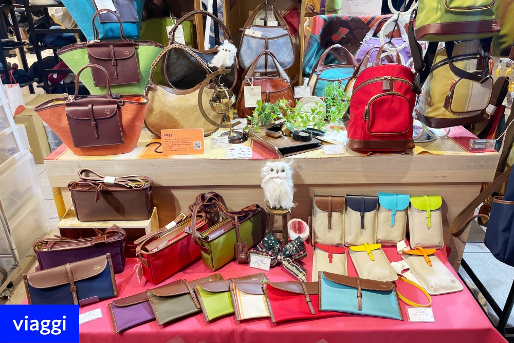 持っているだけで気分が高揚して楽しくなる。そんなテイストのバッグをラインナップしたのが、「旅」がテーマのブランド「viaggi」。明るい色合いのスマホケースやマルチケースなど、移動や旅行時に便利なアイテムは女性客を中心に東京駅を行き交う幅広い層から支持を集めていました。