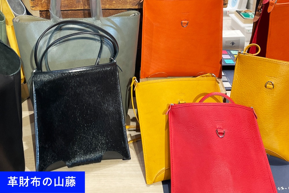 「革財布の山藤」では、顔料を4層塗り重ねて作るオリジナルレザーを用いたミニバッグのほか、冬のコーディネートにぴったりのハラコ素材のバッグも人気の的。冬の装いに温もりを添えるテクスチャーと職人の高度な技が人気の原動力です。